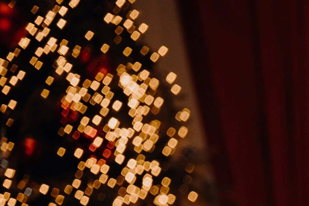 The below example photo of this phenomenon is an extreme crop of the top left corner taken at f2.0. It was a Christmas tree in the background.